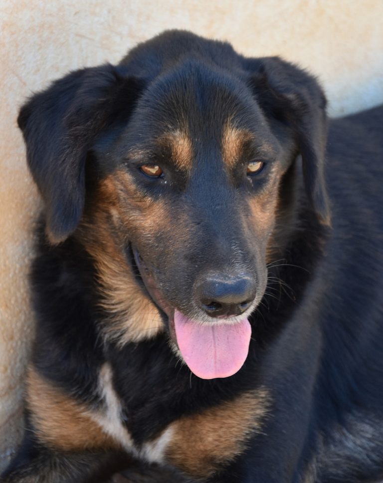 She is an affectionate dog but needs time to adjust, not shy at all but to feel safe and trust you. She is a “climber” that means that the first two weeks even more, she must be inside the house, walk with leash and with caution in the yard always with someone. She has her likes and dislikes regarding dogs but it is not a problem, she can live together with any other dog . Her lower jaw was injured- perhaps broken , we do not know how, we are guessing accident by car at an earlier stage in her life or by…someone?