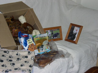 Και η καλή μας Κάριν, η μαμά της Αλκυονίτσας και της Λάουρας, έστειλε για τα μωρά του καταφυγίου ένα σωρό καλούδια. Κουβερτούλες και πετσέτες, μία κούτα με γουρουνοαυτιά, λιχουδιές για τα ζωάκια μας και για μας και δύο φωτογραφίες, σε όμορφες κορνίζες, με τα κορίτσια της. Ευχαριστούμε Κάριν και Κλάους.