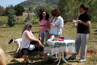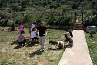 Την Δευτέρα του Πάσχα ήρθαν στο Καταφύγιο μερικοί φίλοι και συνάδελφοι στον εθελοντισμό από άλλους Συλλόγους να περάσουν την ημέρα μαζί μας. Στην αυλή και στο γραφείο στήθηκαν δύο πρόχειροι μπουφέδες με το κάτι τις που έφερε ο καθένας κι ό,τι θερμίδες μας έλειψαν από την προηγούμενη μέρα, τις αντικαταστήσαμε, προς μεγάλη απογοήτευση των τετράποδων που τους είχε πονέσει ο σβέρκος να κοιτάνε ψηλά και να μην πέφτει τίποτα κάτω.