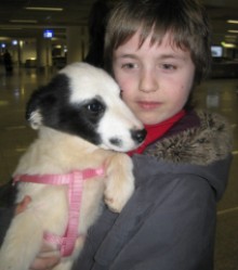 Κι η Αντζελίνα αγκαλιά με κάποιο από τα παιδάκια που είχαν έρθει με τις οικογένειές τους να παραλάβουν τα σκυλάκια τους. Η Αντζελίνα είναι ένα από τα Ιταλάκια κουτάβια. Για να γκρουπάρουμε τα κουτάβια στο καταφύγιο και να μην μπερδεύουμε τα ονόματά τους, τους δίνουμε ονόματα που έχουν σχέση μεταξύ τους.