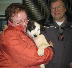 Η Γκαλίνα με το ένα γαλάζιο μάτι, ένα από τα αρκουδοκουταβάκια, πήγε στο σπίτι της. Γεννήθηκε σε ένα οικόπεδο από μαμά Ελληνικό ποιμενικό του δρόμου κι από μπαμπά ημίαιμο Χάσκυ και τις πρώτες μέρες τα φρόντιζε μία οικογένεια της γειτονιάς. Όταν άρχισαν να βγαίνουν στο δρόμο τα πήραμε στο καταφύγιο. Όλοι ξετρελλάθηκαν μ’ αυτά τα κουτάβια, όμως μόνο μία οικογένεια από την Αθήνα υιοθέτησε ένα από αυτά. Όλοι οι άλλοι έμειναν να τα θαυμάζουν. Κι έτσι τα μωρά, έφτιαξαν τις βαλίτσες τους και ξενητεύτηκαν εκεί που τα περίμεναν με ανοιχτές αγκαλιές.