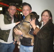 Το πιο μεγάλο από τα ημίαιμα μποξεράκια ο Κόναν αγκαλιά με την μαμά του και τον καινούργιο του “αδελφό”. Την προηγούμενη μόλις ημέρα είχαν βάλει τα κουτάβια την Νάντια κάτω και της μασάγανε τα μαλλιά:-) 03.03.2012