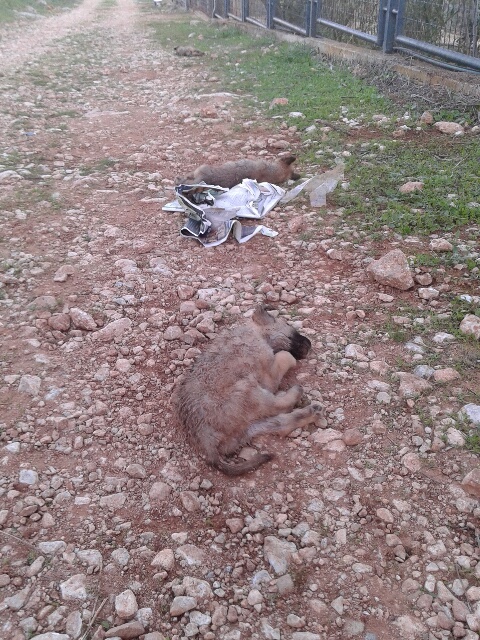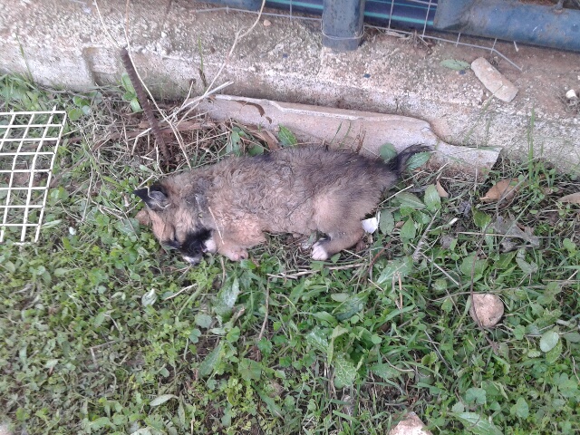 Σήμερα το πρωι εθελόντρια μας βρέθηκε μπροστά σε αυτές τις εικόνες! Εσείς νομίσατε ότι τα σώσατε με το να τα παρατήσετε στην ερημιά μέσα στην άγρια νύχτα για να βγάλετε την ευθύνη από πάνω σας. Τα κουτάβια που εγκαταλείψατε μπροστά στο καταφύγιο βρέθηκαν σήμερα το πρωί έξω από το κλουβάκι, πνιγμένα από κάποιο άγριο ζώο κι επειδή κυκλοφορούν πολλές αλεπούδες στην περιοχή μας, είμαστε σίγουροι ότι κάποια αλεπού τα έπνιξε. Και δυστυχώς δεν είναι τα μόνα. Αλεπούδες έχουν πνίξει κι άλλα κουτάβια αλλά και ενήλικα ζώα που έχετε αφήσει είτε δεμένα στο δέντρο είτε μπροστά από το καταφύγιο. Να δούμε πότε θα βάλετε μυαλό και θα σταματήσετε να καταδικάζετε σε θάνατο αθώα πλάσματα εγκαταλείποντάς τα για να κάνετε το κακώς εννοούμενο καθήκον σας σε βάρος άλλων. Λες και δεν μας έφτανε το μαρτύριο που βλέπουμε καθημερινά να περνάνε τα αδέσποτα ζώα, έπρεπε πάλι σήμερα το πρωί να μαζεύουμε άψυχα κορμάκια μωρών.