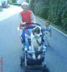 Και το τελευταίο μωρό από τα κουτάβια του συνεργείου, η Μερσέντες,υιοθετήθηκε! Η οικογένεια ήθελε ένα κουτάβι βαρύ, ασήκωτο, σοβαρό, χωρίς χαριτωμενιές και όχι φιλικό προς τους ξένους. Λες και φωτογράφιζαν την Μερσέντες. Η φωτογραφία που μας έστειλε η οικογένεια, αν και τεχνικά μη άρτια, είναι ένας θησαυρός. Η μαμά σπρώχνει στο καροτσάκι το τετράποδο υπερφυσικό μωρό και το δίποδο πηγαίνει από δίπλα με τα πόδια 🙂