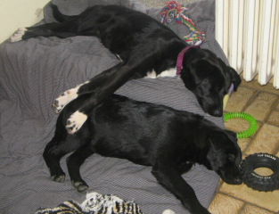 Η Ελβίρα, αδελφή του Τσε κι η Νέρα, αδελφή του ’γη, μετά από εξοντωτική δουλειά μιας ολόκληρης ημέρας 🙂 Κουρασμένος σκύλος, ευτυχισμένος σκύλος! Μακάρι να είναι η ζωή σας από δω και πέρα μόνο παιχνίδι, ύπνο, αγάπη και καλό φαΐ.