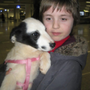 Κι η Αντζελίνα αγκαλιά με κάποιο από τα παιδάκια που είχαν έρθει με τις οικογένειές τους να παραλάβουν τα σκυλάκια τους. Η Αντζελίνα είναι ένα από τα Ιταλάκια κουτάβια. Για να γκρουπάρουμε τα κουτάβια στο καταφύγιο και να μην μπερδεύουμε τα ονόματά τους, τους δίνουμε ονόματα που έχουν σχέση μεταξύ τους.
