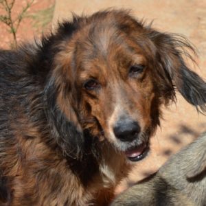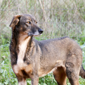 Μέϋ η Μαγιοπούλα, την ονόμασε η κοπέλα που την βρήκε γιατί με το μπήκε στο καταφύγιο ξεκίνησε η Άνοιξη της καινούργιας της ζωής. Μας έρχεται από το Μενίδι και στις φωτογραφίες φαίνεται πώς ζούσε μέσα σε σκουπίδια. Πλάσμα βαθειά πονεμένο και ταλαιπωρημένο. Αφυδατωμένη και πεινασμένη έφτασε στο καταφύγιο και στην αρχή δεν μπορούσε να σηκωθεί και να σταθεί. Τα πλευρά της και τα οστά της λεκάνης της κοντεύουν να τρυπήσουν το δέρμα και δεν πατάει το αριστερό της μπροστινό πόδι. Σηκώνεται μόνο για να φάει και ξαπλώνει πάλι στο σπιτάκι της.
