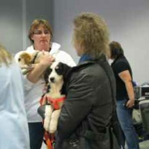 Η Ίννες, ο μεγάλος μπελάς, στην αγκαλιά της μαμάς της. Αυτό το κουτάβι χρειάζεται άνθρωπο που γνωρίζει πώς να συμμαζέψει ένα κουτάβι που θεωρεί ότι όλος ο κόσμος του ανήκει. Ευτυχώς η μαμά της είναι εκπαιδεύτρια σκύλων και dog whisperer. Στο βάθος η "θεία 'Aνκε" μαμά της Σμάιλυ, με την Ανέτ αγκαλιά. Η Ανέτ θα φιλοξενηθεί στο σπίτι της Φλέρυς μας. …