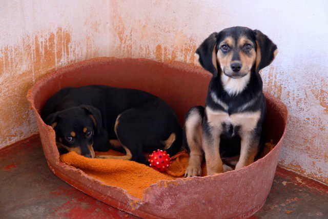 Δυο αρσενικά κουτάβια βρέθηκαν παρατημένα μέσα σε ενα κλουβί λίγο πιο κάτω απο το Καταφύγιο μας, είναι απο αυτά που αφήνουν οι καλοί “φιλόζωοι”!