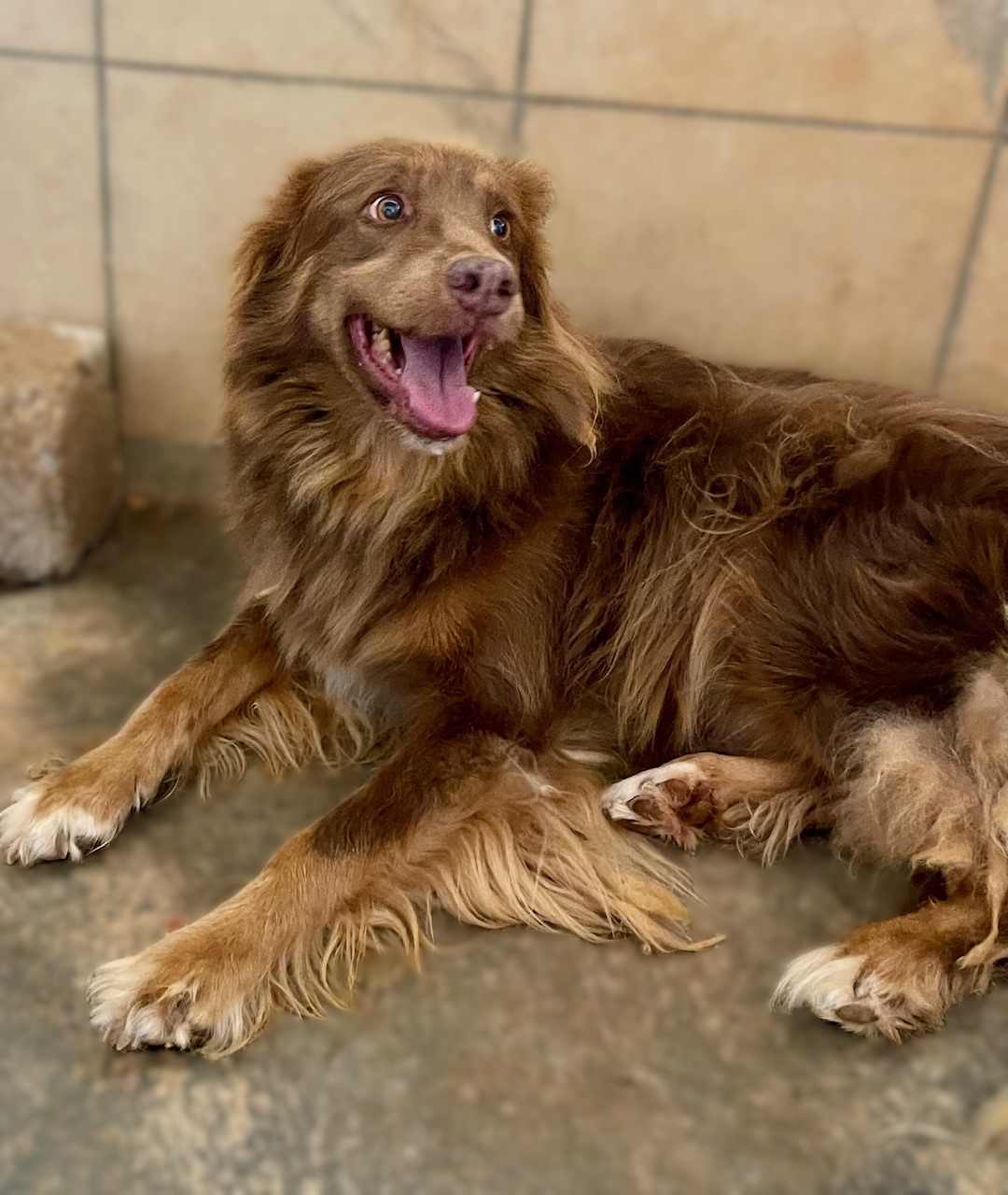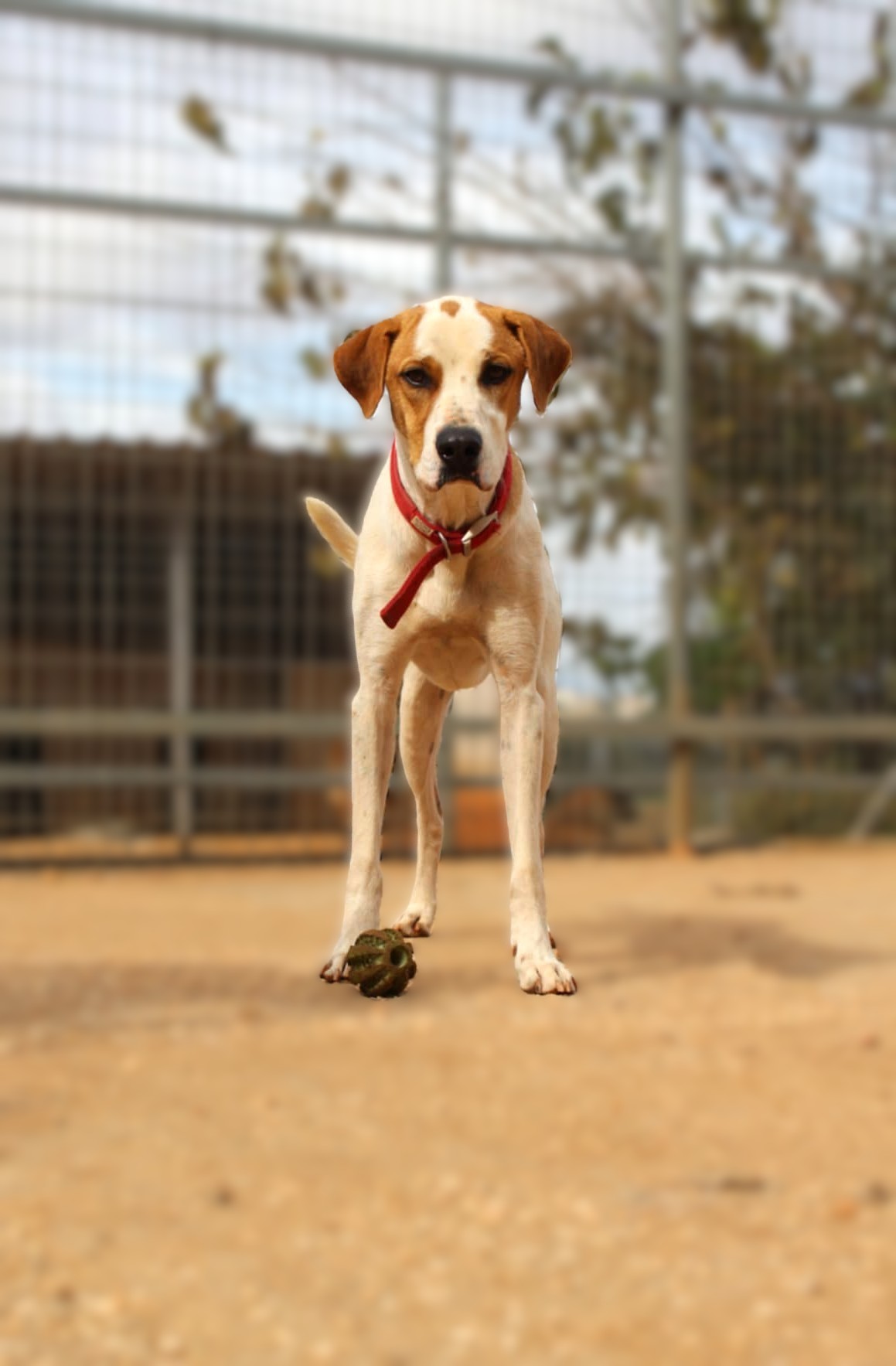 Είναι πολύ παιχνιδιαρης και τρυφερός, είναι πολύ χαρούμενος και κοινωνικός. Όταν έχουμε επισκέψεις στο καταφύγιο δεν ξέρει τι να κάνει πρώτα, να πάει για χάδια ή να πάει την μπάλα του.